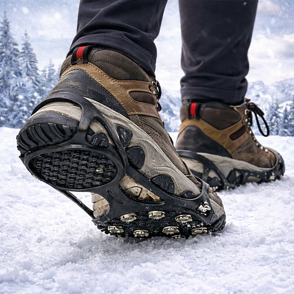 Datorită vârfurilor din metal dur, tălpiciile oferă o aderență excelentă chiar și pe gheață lucioasă. Structura lor specială pătrunde ușor în zăpadă și polei, reducând riscul de alunecare și oferindu-ți încredere la fiecare pas. ❄️🧊